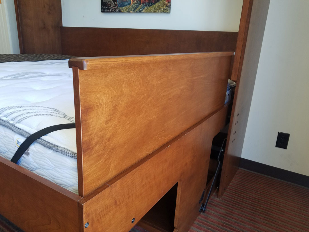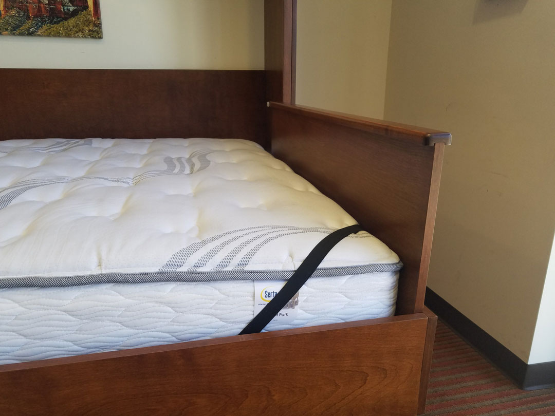 The Pillow Keeper is a helpful option that is unique to Wilding Wallbeds. Most companies don’t address the frustrating issue of pillows falling off the end of Side Mount Wallbeds. Little can ruin a good night of sleep on a wallbed like your pillow repeatedly falling off the bed! This handy Pillow Keeper will keep your pillow in place during the night.