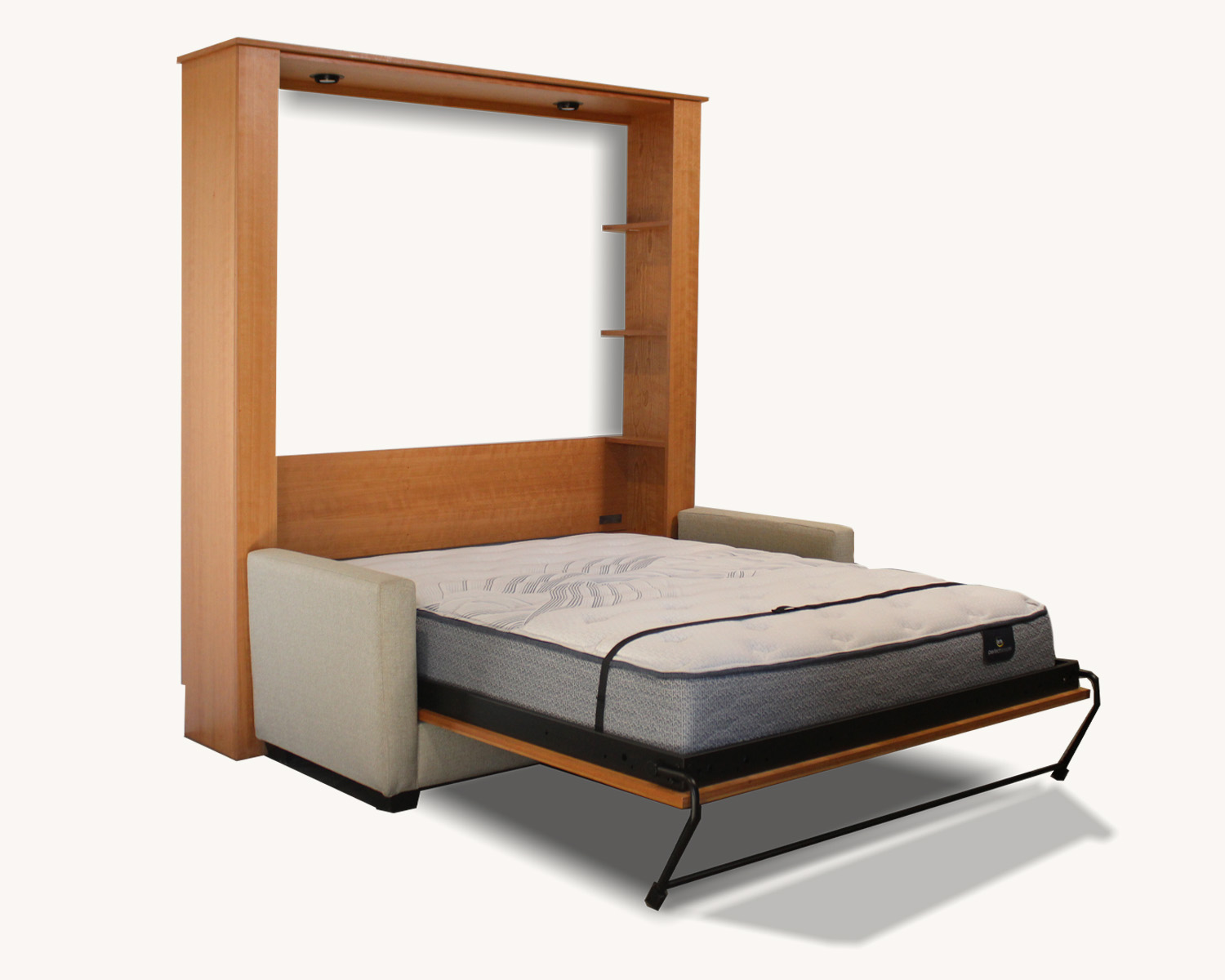 - Queen Park City Sofa Murphy Bed in Cherry Wood / Natural Finish