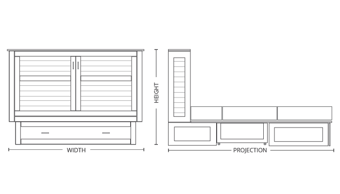 *Projection is measured from the wall. This is the total distance into the room, from the wall, that the bed occupies when it is open.