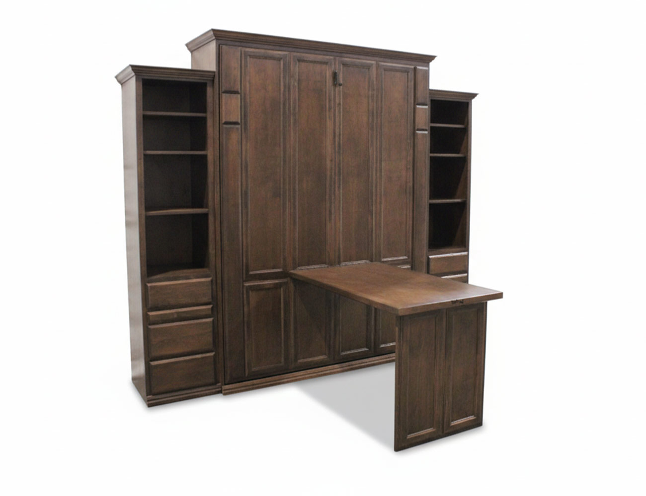 This special includes our Queen size Brittany II wall bed in Alder/ Burnt Sugar, LED lighting system, Deep design, Drop Down Table and two 18″ Three Drawer side cabinets. For a limited time, Wilding Wallbeds will pay $400 of your shipping.