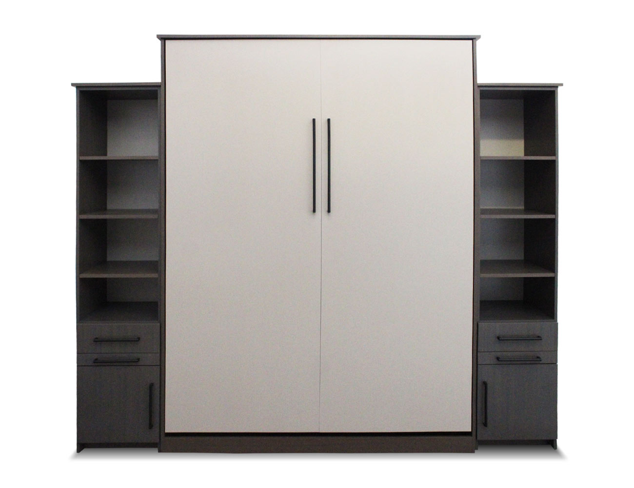 This special includes our Queen size Scape Murphy bed in Two Tone finish (Paint Grade/ Mega Geige, Mahogany/Driftwood), Deep Design, LED lighting system, and 2 18″ Door and Drawer cabinets with Slide Out trays. For a limited time, Wilding Wallbeds will pay $400 of your shipping.