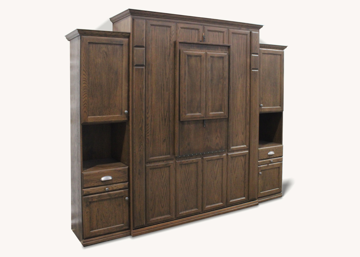 - Queen Brittany II Wallbed / Oak / Autumn Haze with Black Glaze